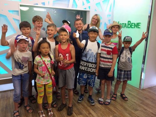 Четвёртый день в летнем обучающем лагере "ЮниКомПлюс". Мальчишки задают очень динамичный тон занятиям, на фото очень-очень талантливый и разумный СО2 (именно так он представился на первом занятии) и очень непоседливый, но вдумчивый Махан (тоже псевдоним). Вообще у нас целая мужская сборная и четыре вишенки - девочки, которые украшают команду и вносят в яркий энергетический поток мальчишек немного нежности, спокойствия и рассудительности.